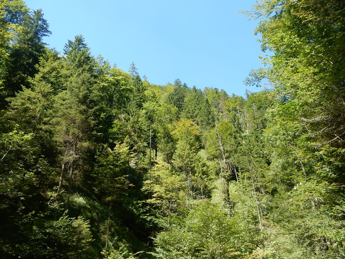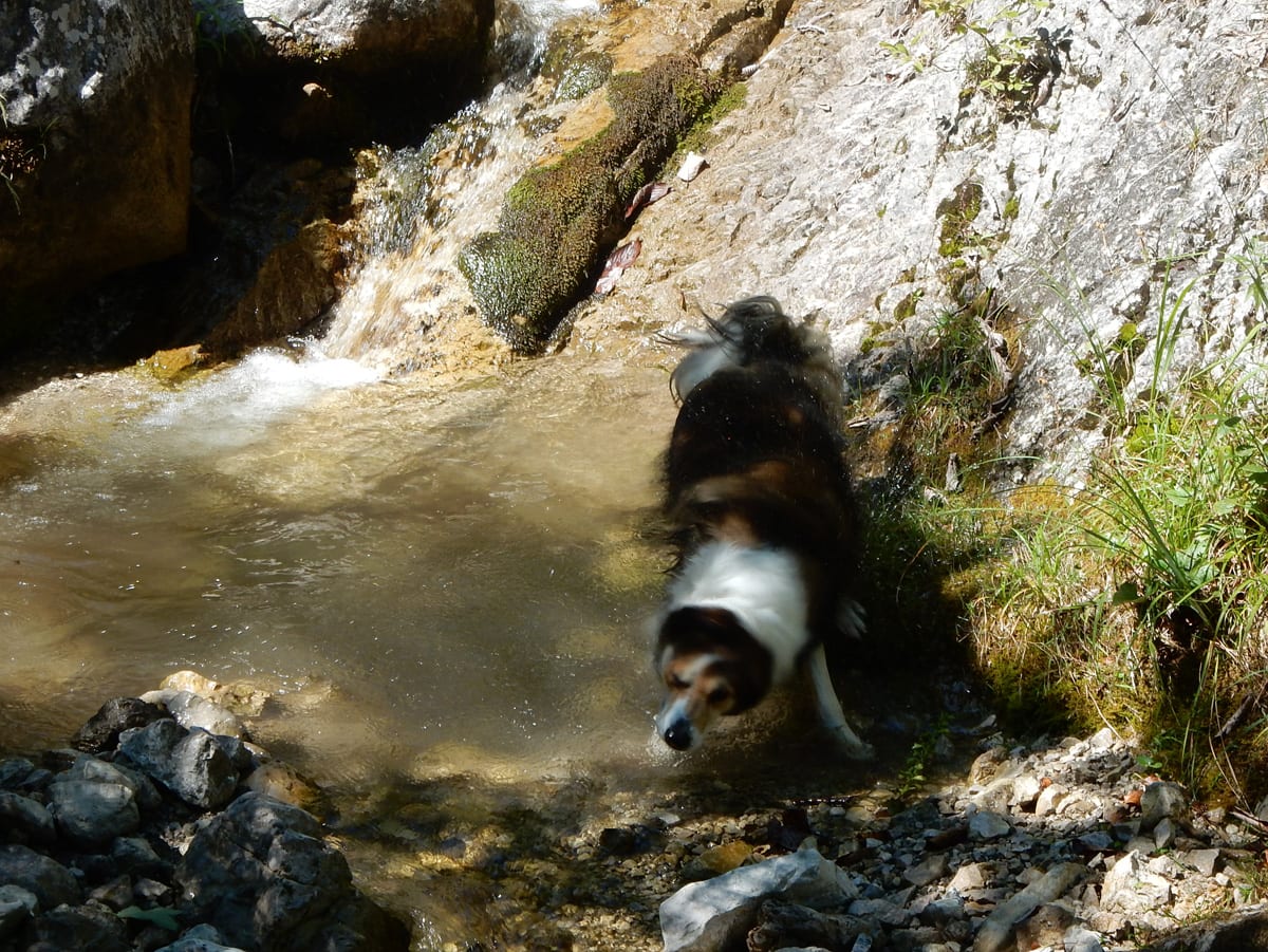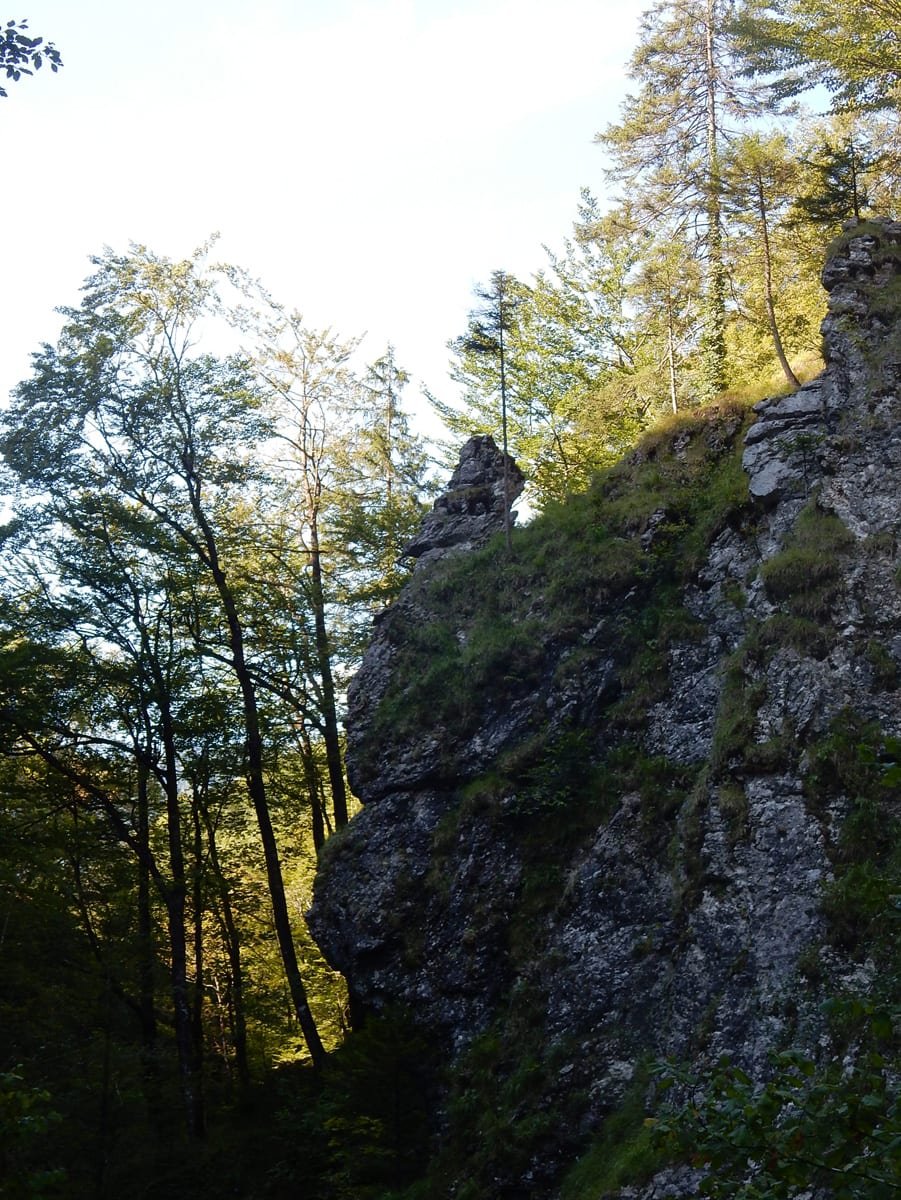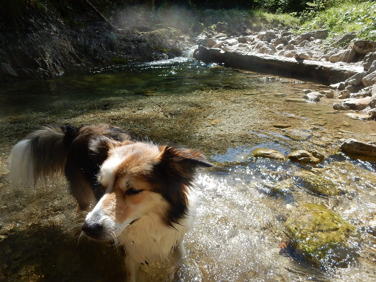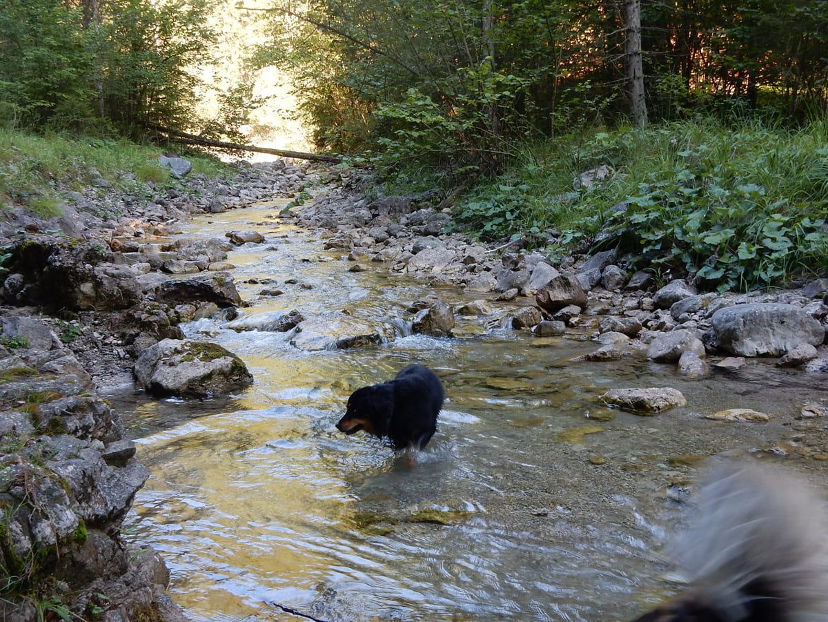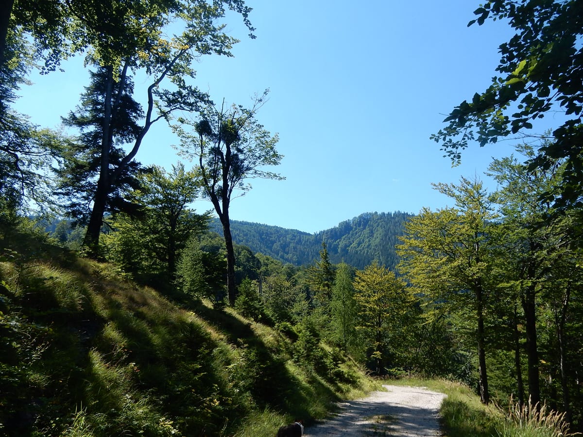 Den Weißenbach entlang bis hinauf zum Schöneck (917m): eine nicht ganz so kurze Strecke, die entweder am Wasser entlang oder meistens im Schatten verläuft. SO halten wir es bis Mittag aus und dann kommt eh wieder das übliche: Chillen am Bach!