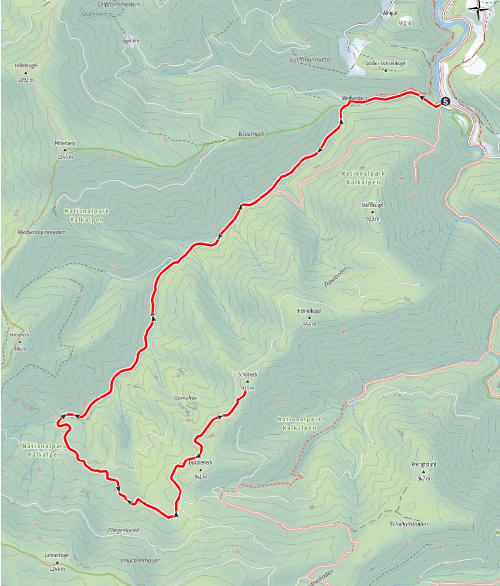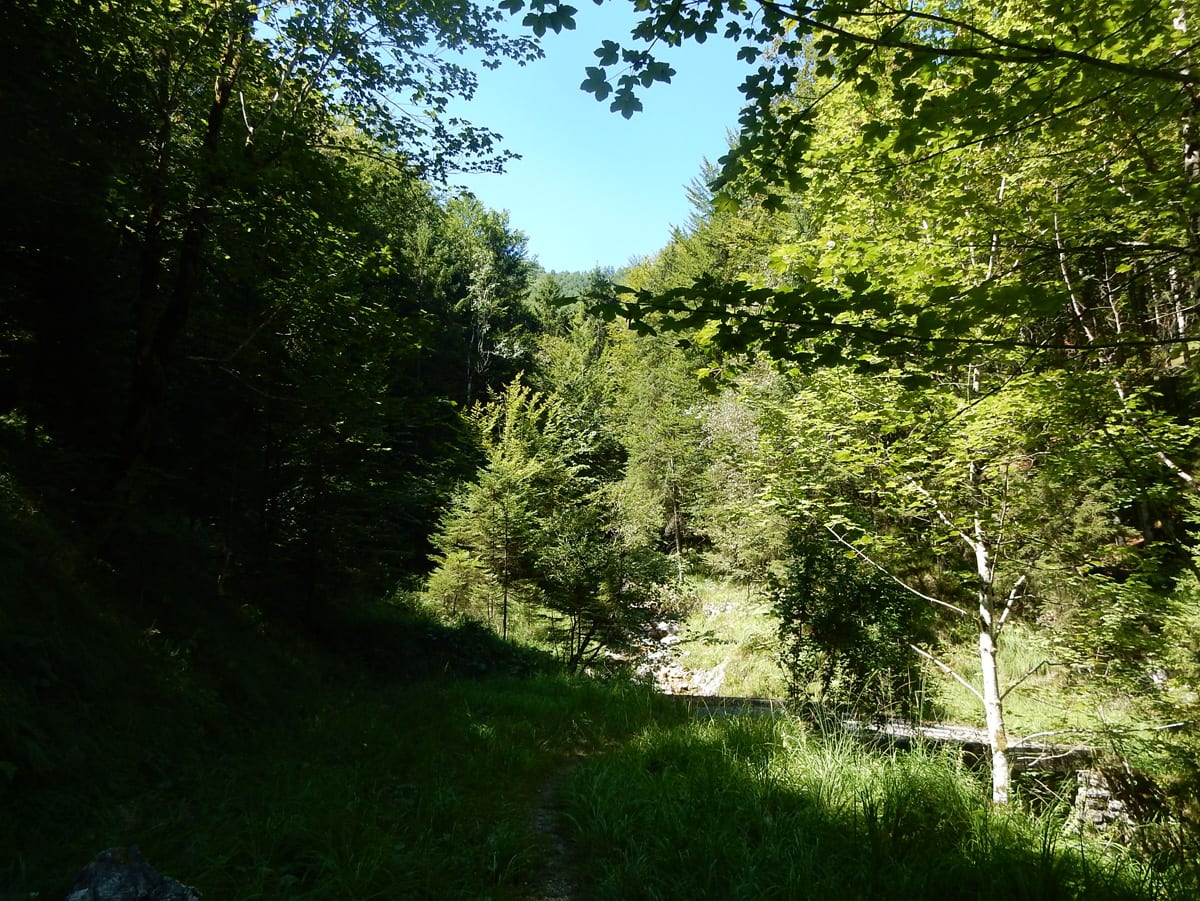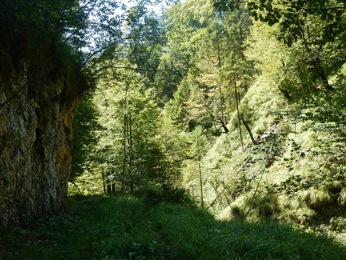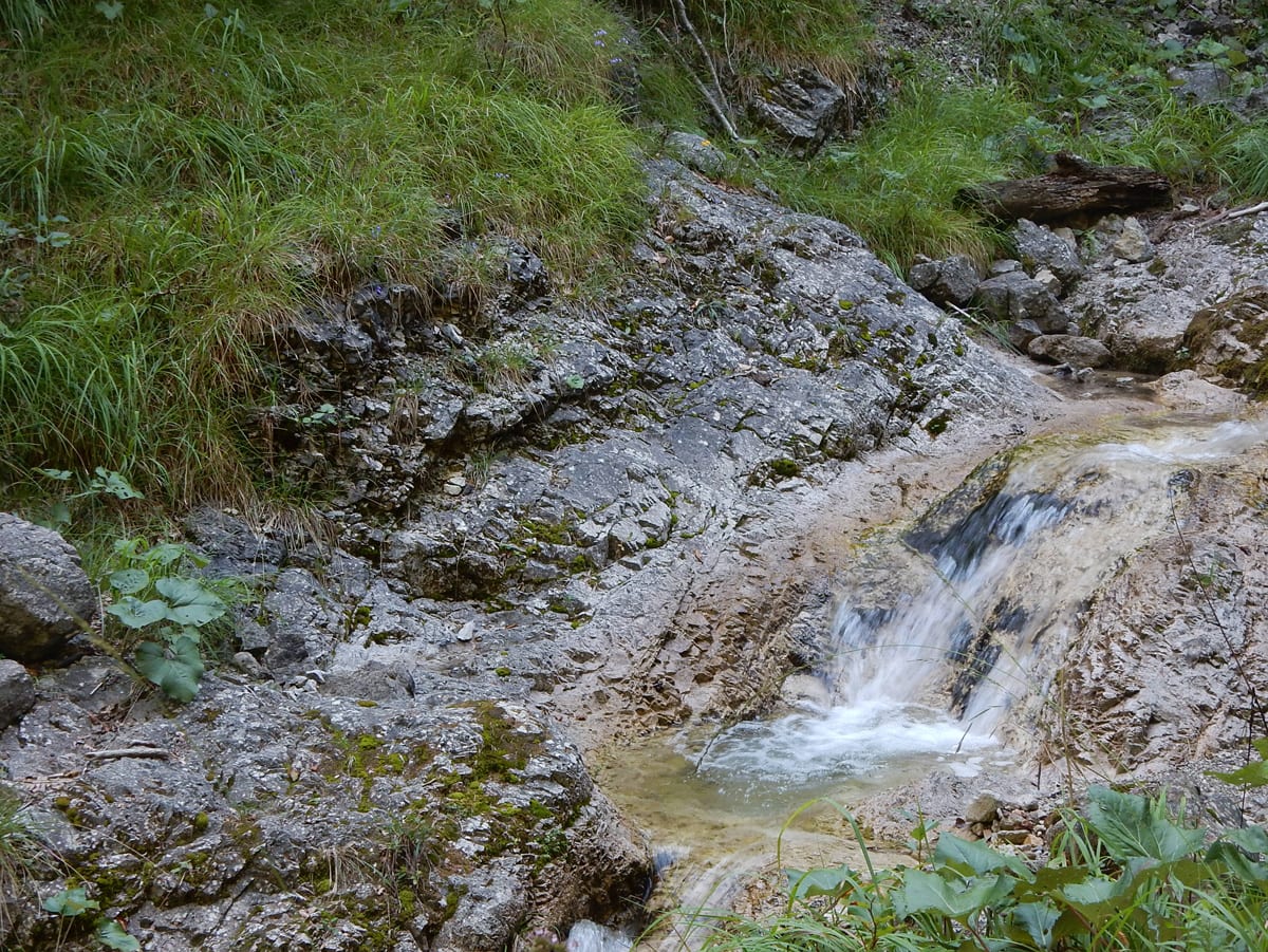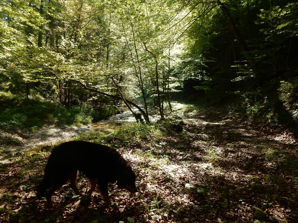 Den Weißenbach entlang bis hinauf zum Schöneck (917m): eine nicht ganz so kurze Strecke, die entweder am Wasser entlang oder meistens im Schatten verläuft. SO halten wir es bis Mittag aus und dann kommt eh wieder das übliche: Chillen am Bach!