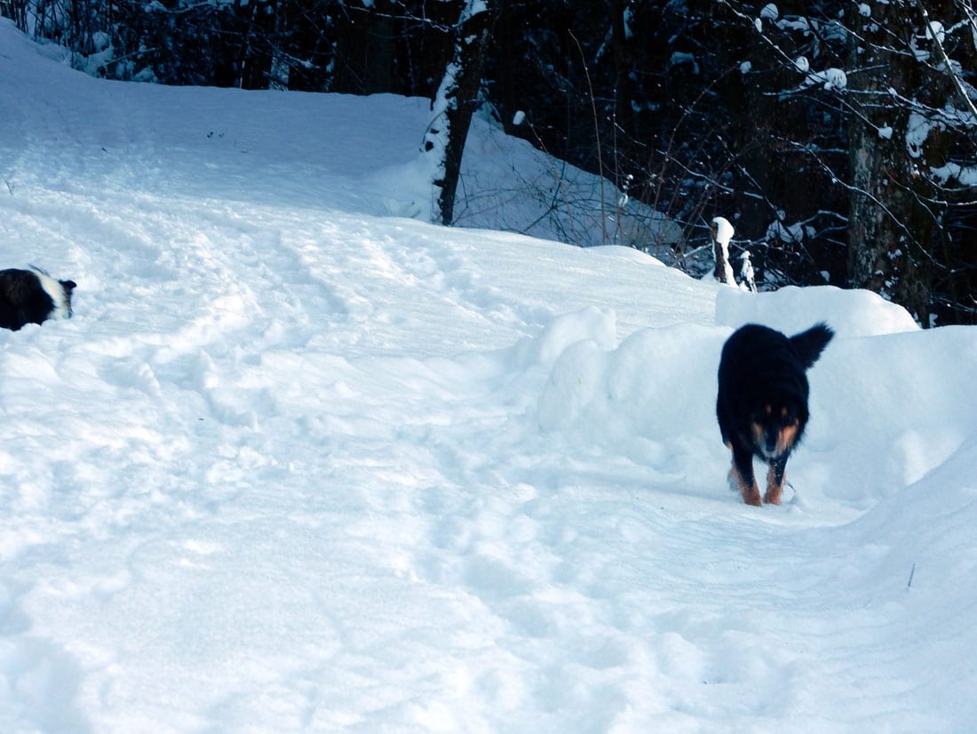 Nur ein paar Minuten mit dem Auto und wir sind im Kohlergraben. Super, voll der Winter, perfekt zu umadumdeifin; nur diese Eiskugerln im Pelz sind manchmal lästig.