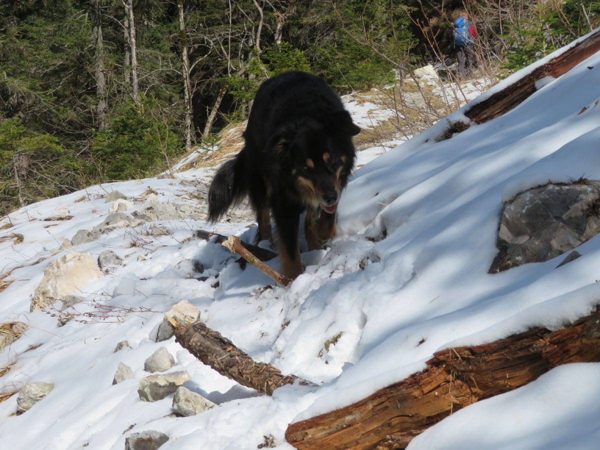Das wird heute nix mit der Weingartalm, deshalb eine kurze Pause am Biwakplatz und wieder zurück zum Bodinggraben. Zum Ausgleich spazieren wir dann noch zur Blumauer Alm. Auf dem Weg dorthin liegt zwar auch noch viel Schnee, aber das bisserl schaffen wir mit links 🙂