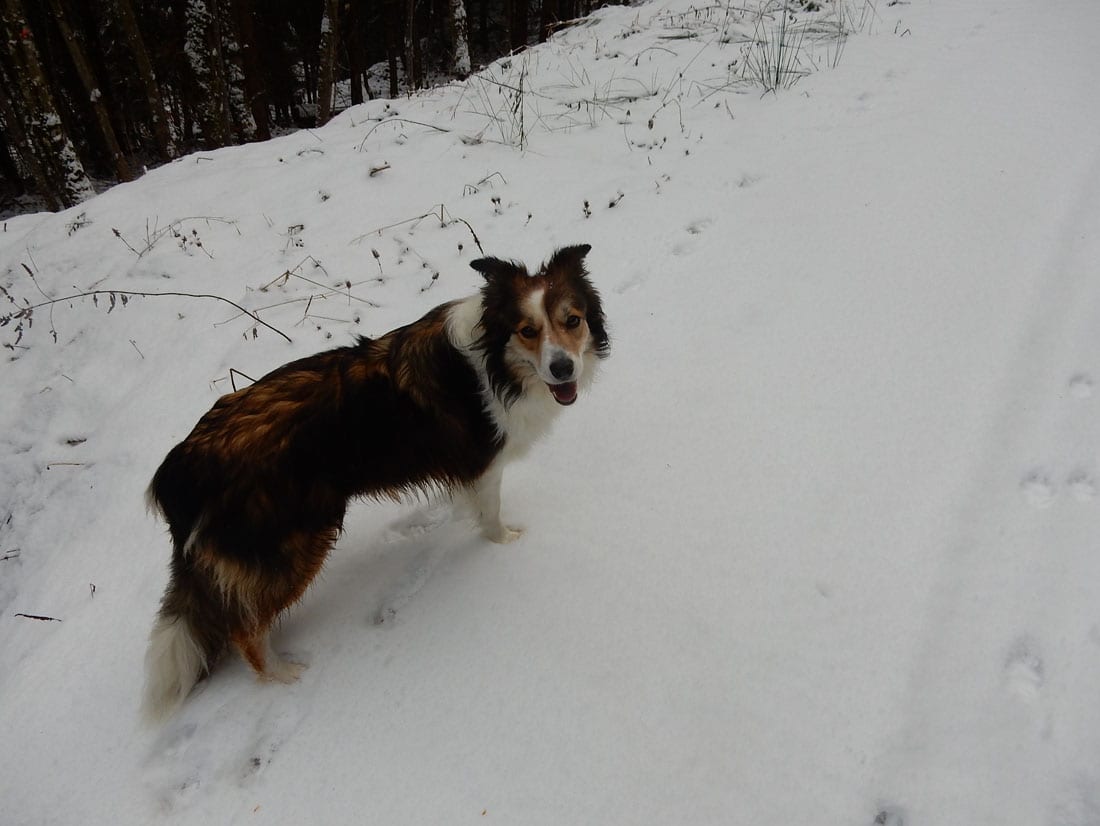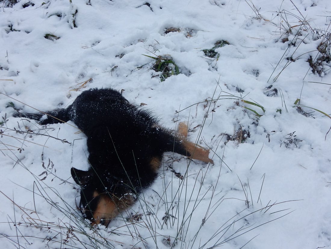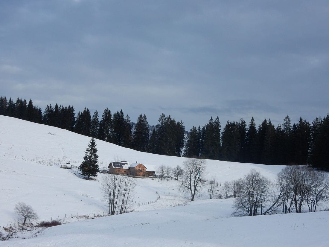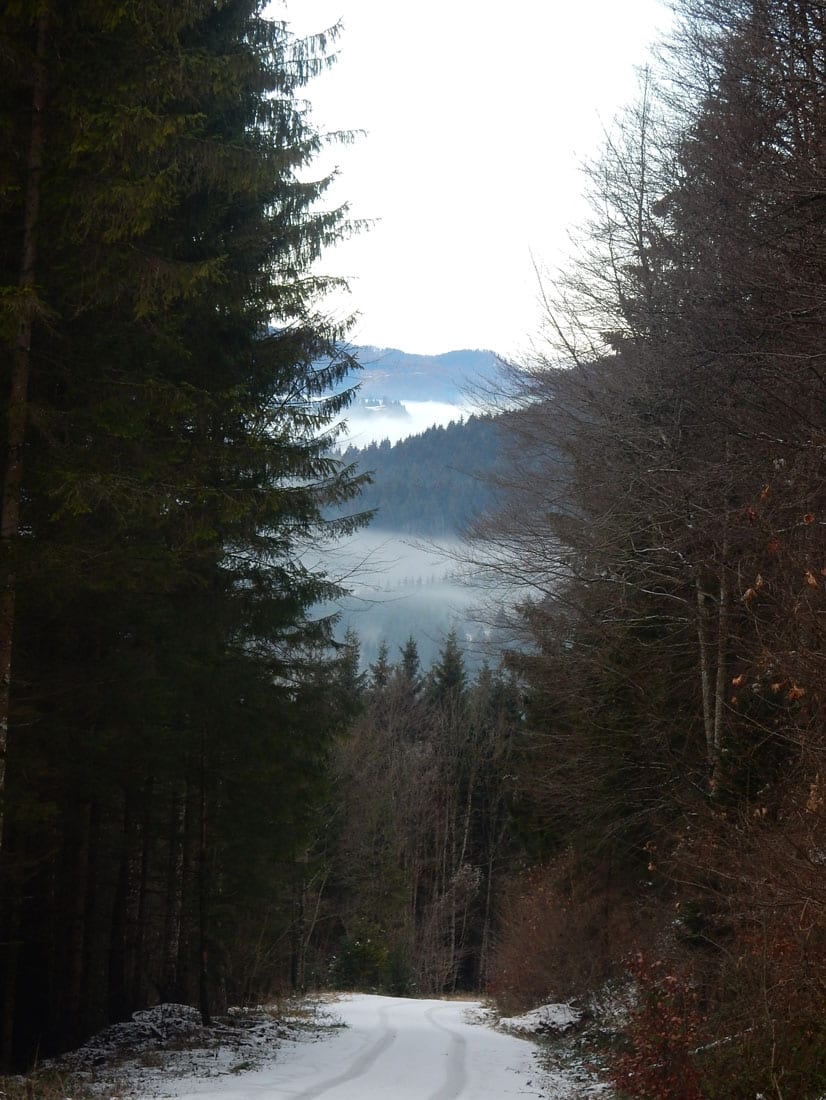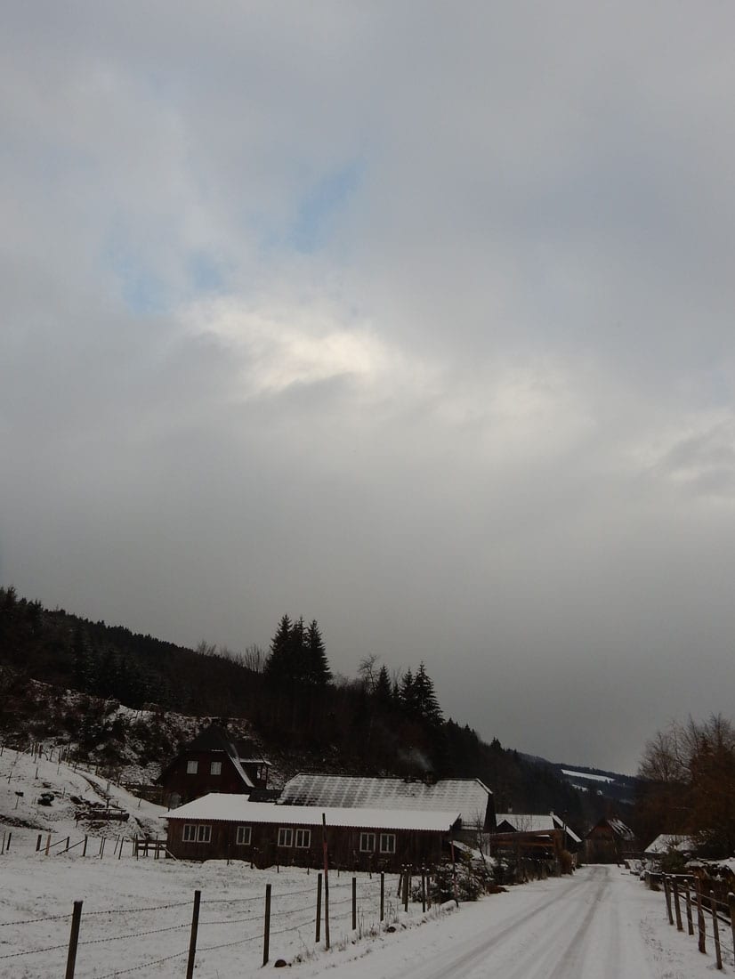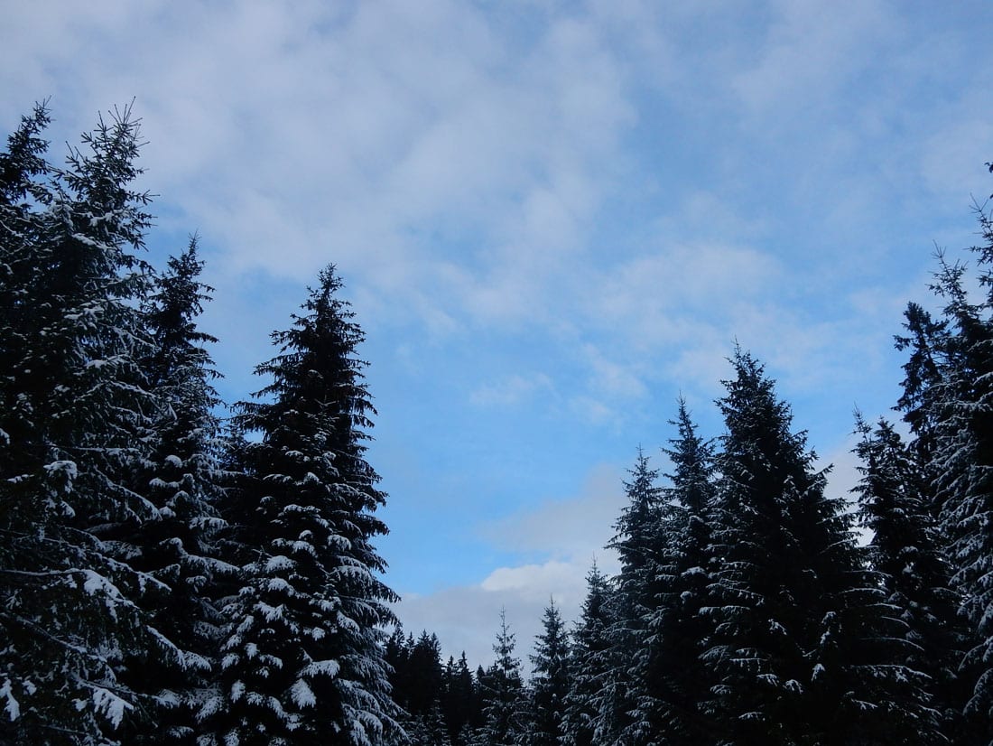 Nicht gerade tiefster Winter aber Winter – ein paar Zentimeter liegen überall, auf den Freiflächen etwas mehr, im Wald etwas weniger.