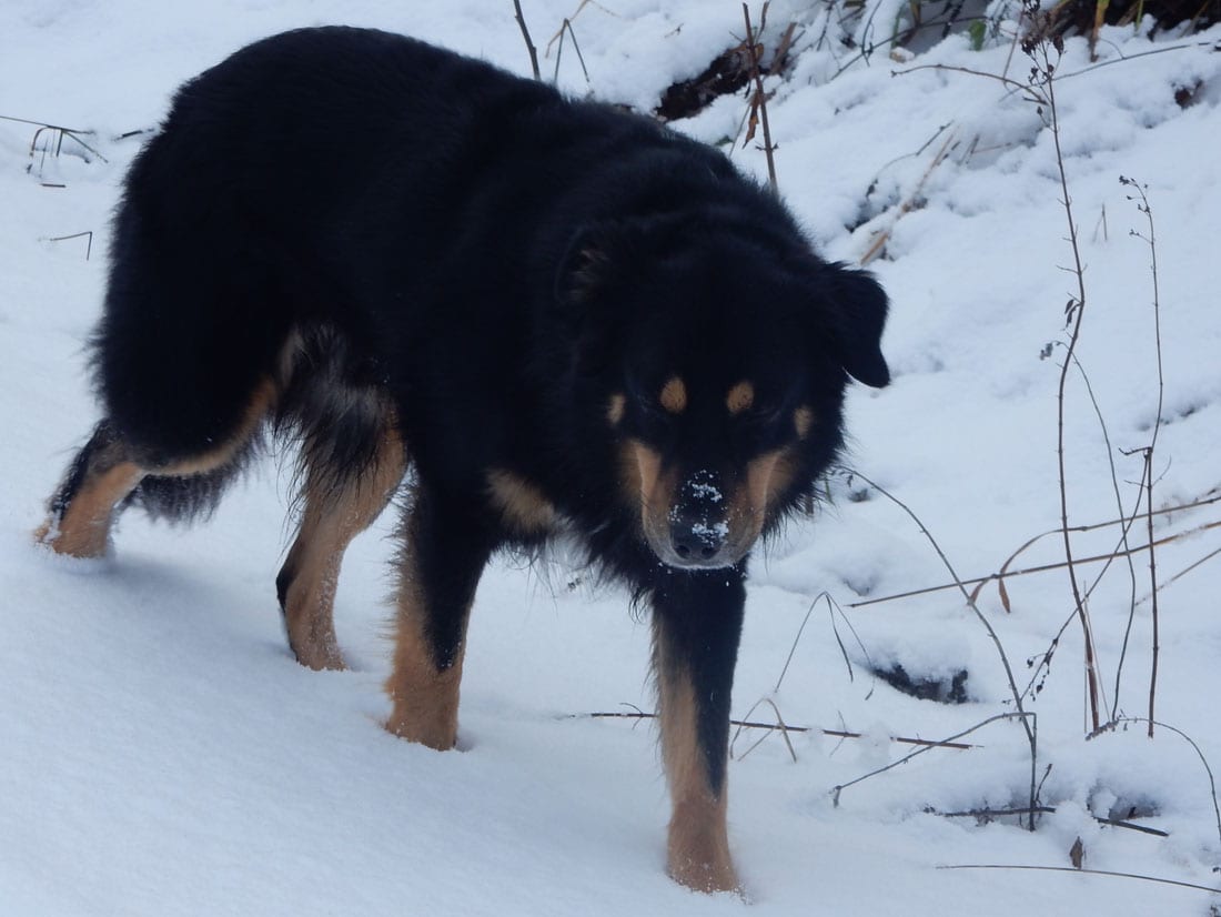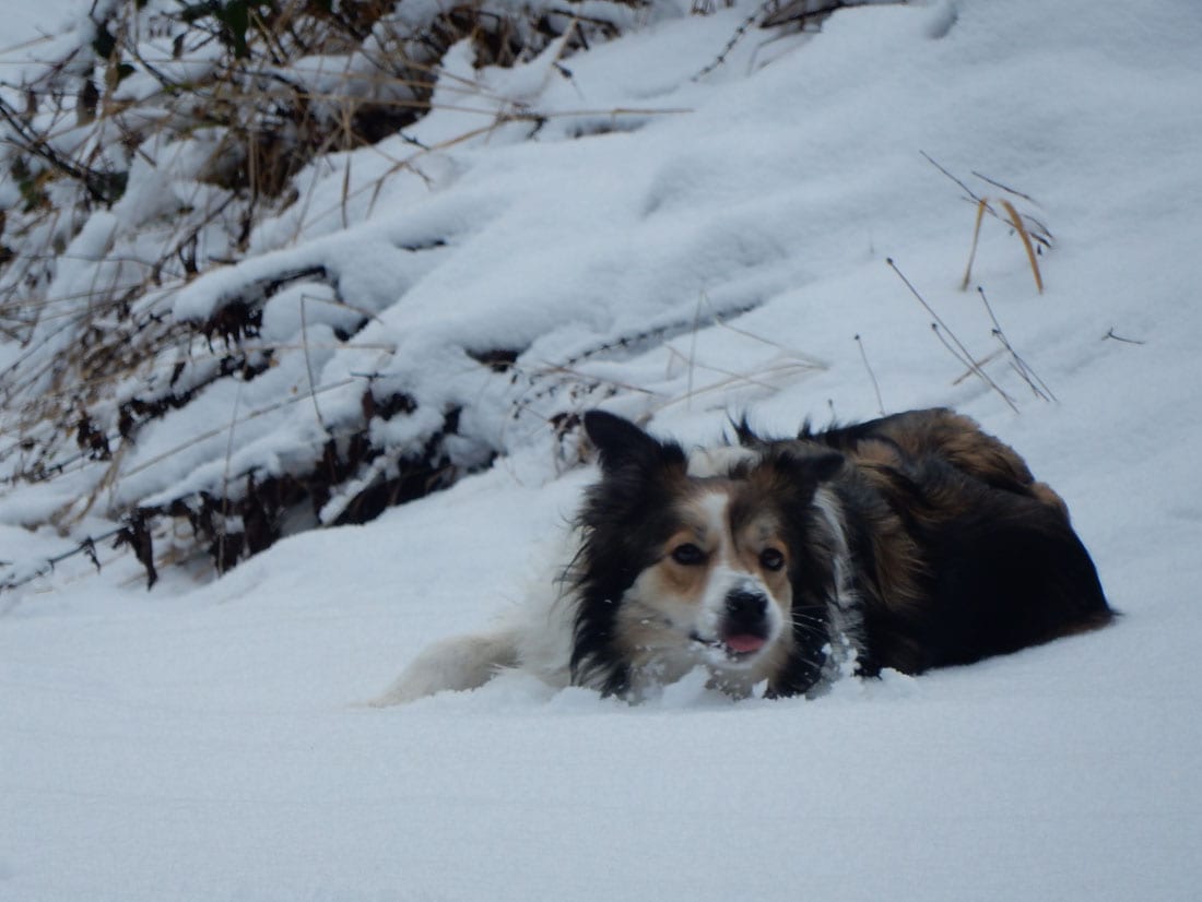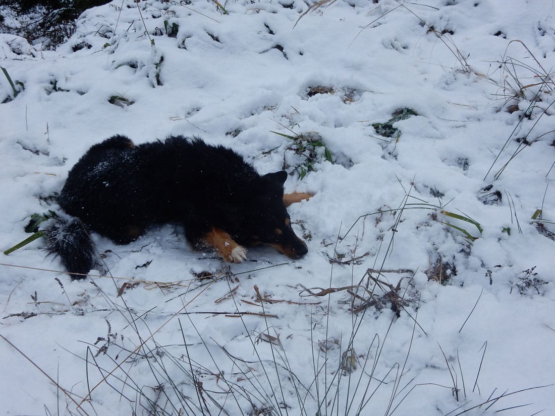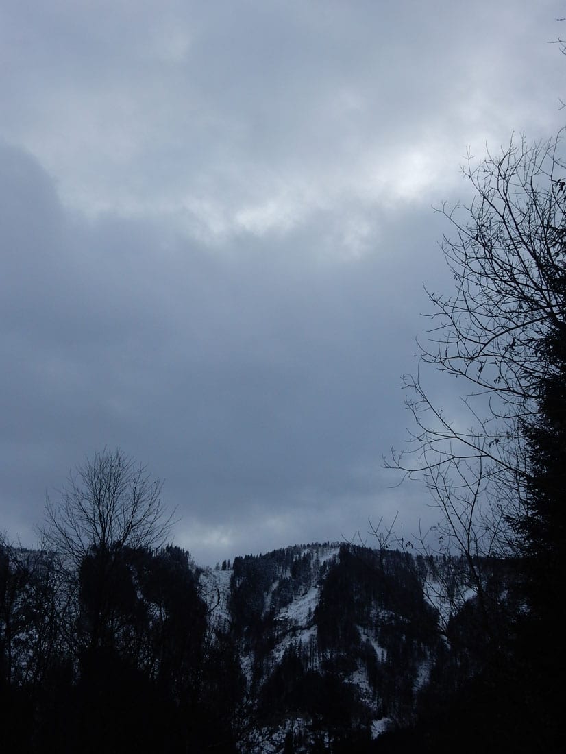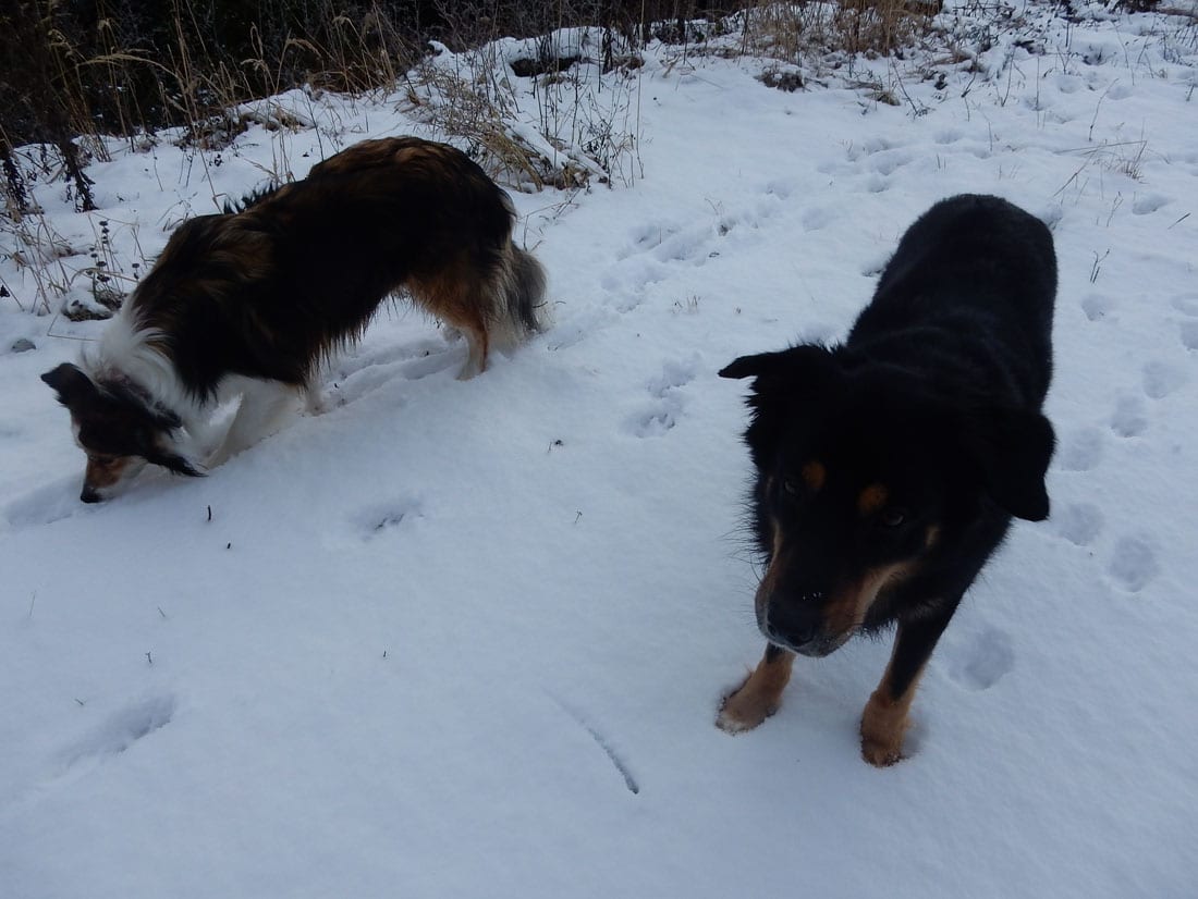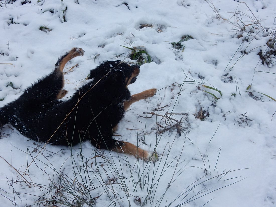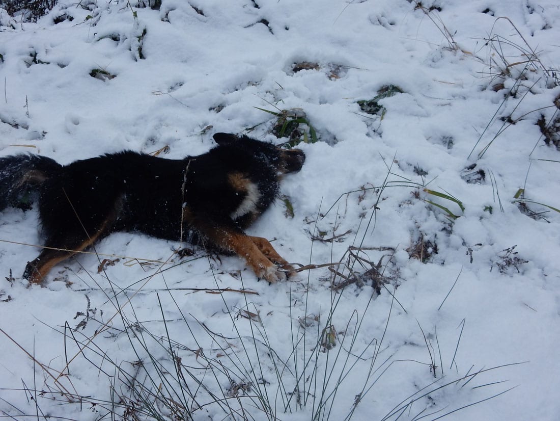 Nicht gerade tiefster Winter aber Winter – ein paar Zentimeter liegen überall, auf den Freiflächen etwas mehr, im Wald etwas weniger.