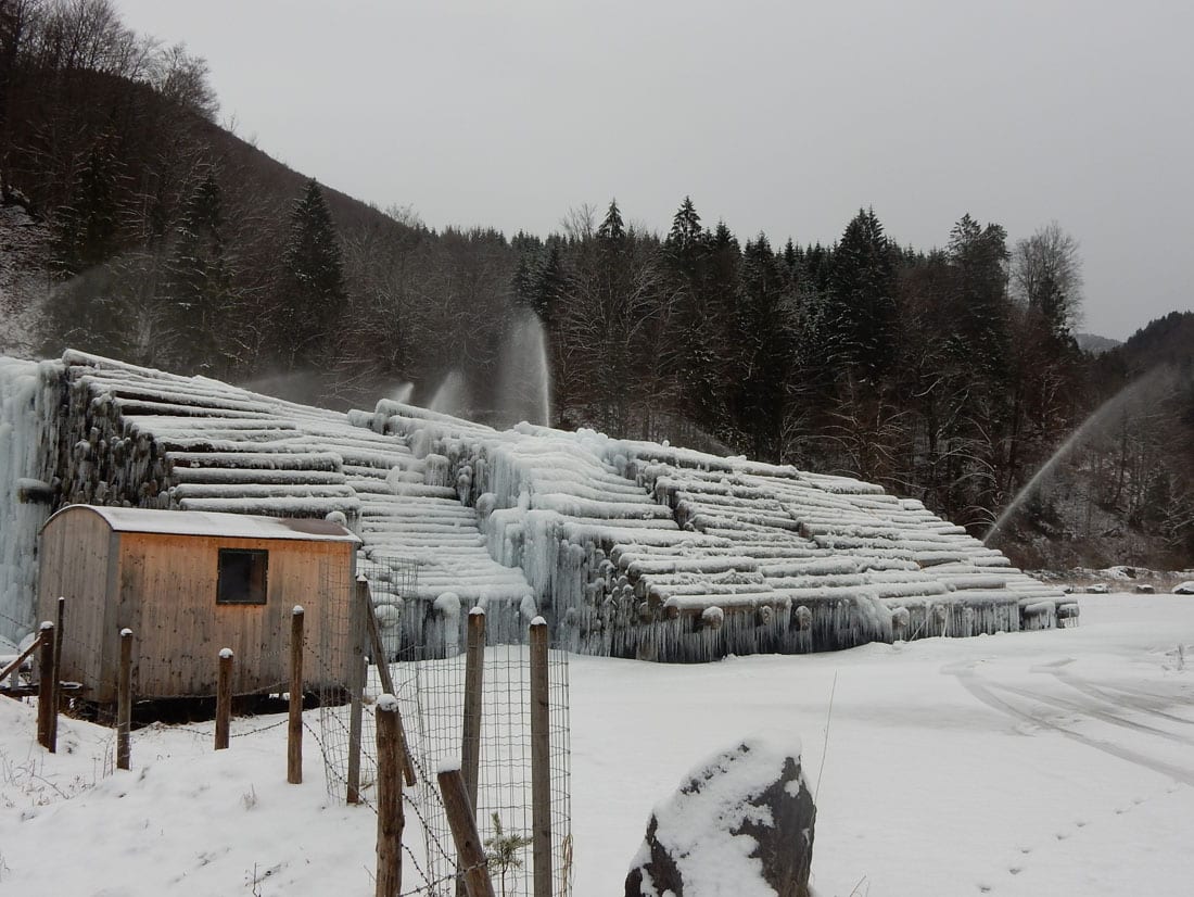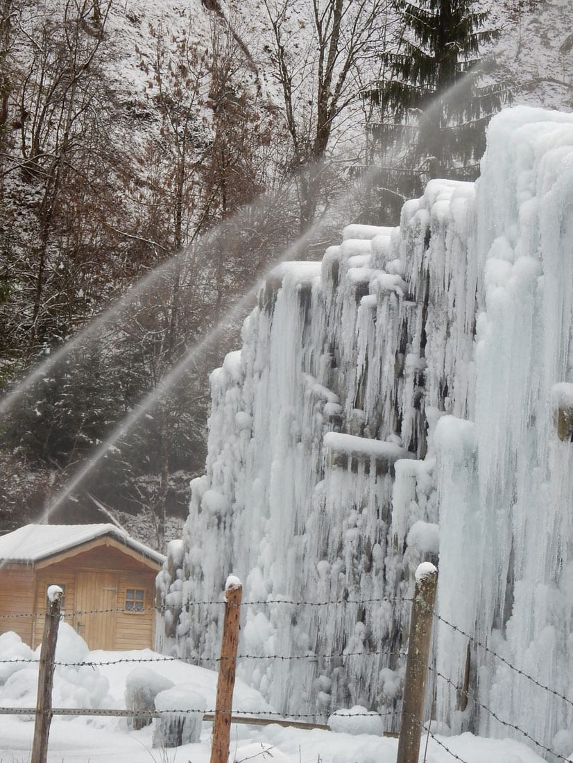 also die eisskulpturen aus den baumstämmen sind schon sehr beeindruckent, und erst die wasserstrahlen die über sie hinwegsprühen. und die 2 hundsis hatten es fein. schöner ausflugstag für euch drei.