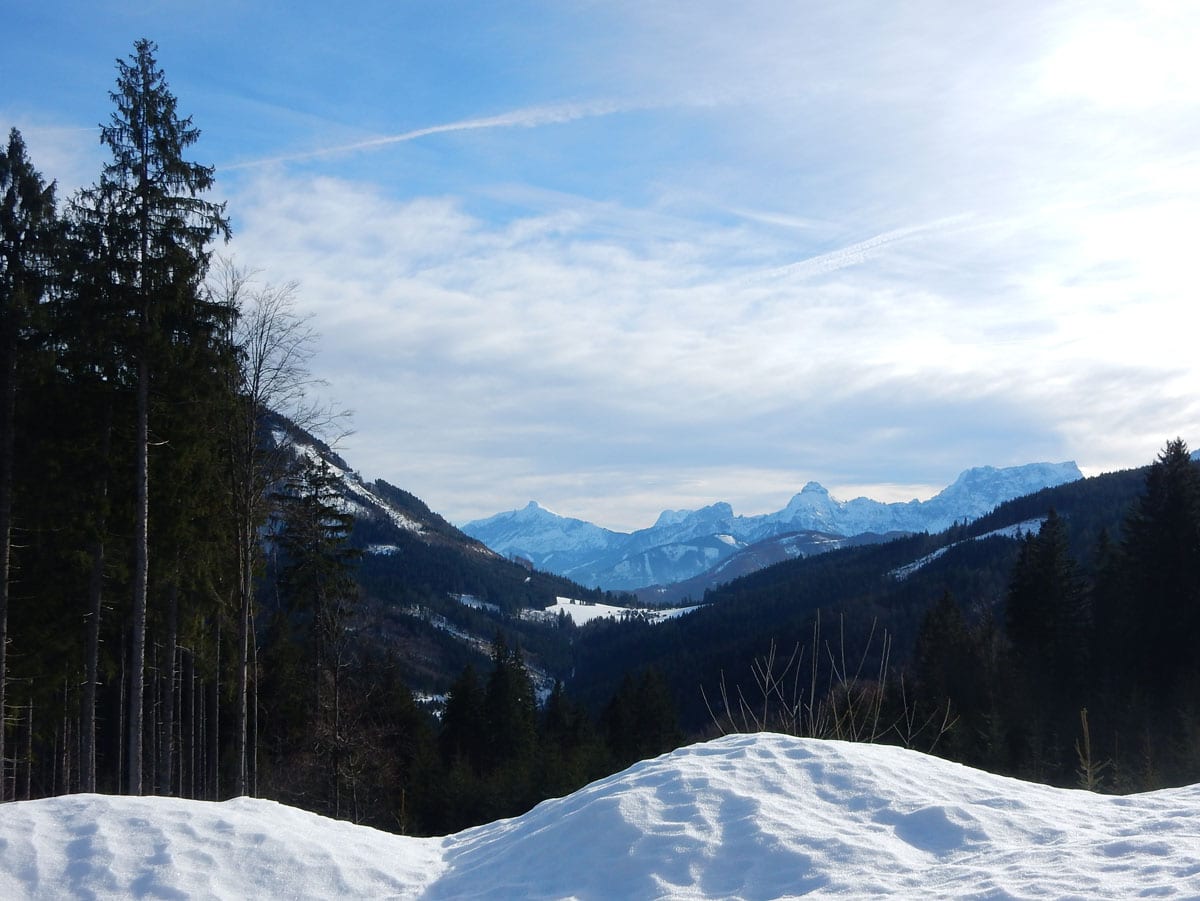 Zur Anlaufalm im Winter – da liegt immer Schnee und die Parade der schneebedeckten Berge rundherum ist toll. So soll es auch heute werden, denn es ist kalt und Sonne ist angesagt.