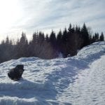 Für das erste Stück schnallt s’Herrl die Steighilfen an, denn es geht die vereiste Forststraße hinauf. Sehr ungewohnt: während die Ronja und ich herum rutschen, zieht er nur so den Berg hinauf. Bis zum Hirschkogelsattel, denn dann wird auf Schneeschuhe gewechselt.